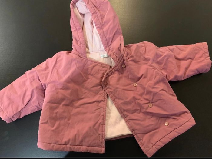 petit manteau obaïbi rose en taille 6 mois bon état