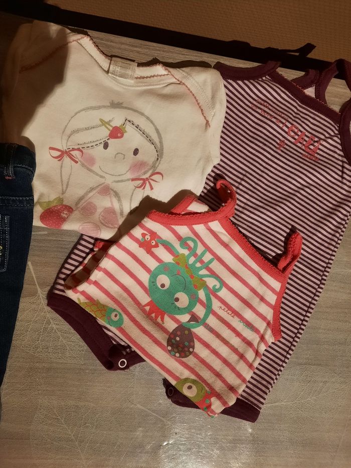 Joli lot fille 12 mois 2 jeans, 1 sarouel, 3 bodies Tbe general