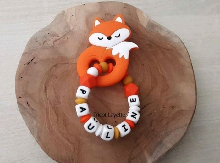 Anneau de dentition renard Réalisé avec du ruban à la place du fil, pour plus de sécurité Prénom au choix (personnalisation par message) Les couleurs peuvent être changées Delais de fabrication: maximum 5 jours (hors dimanche et jour férié) Je ne réalise l'anneau qu'une fois le paiement validé, une photo vous sera envoyée avant l'envoi.