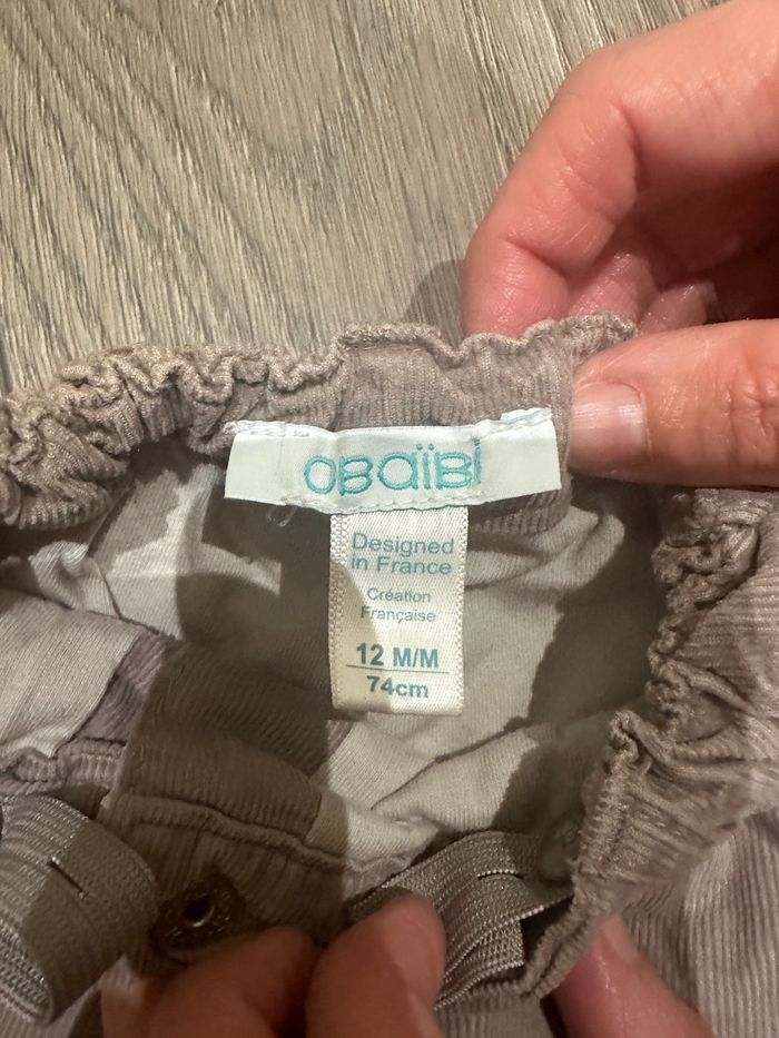 Pantalon côtelé et doublé Okaidi 12 mois en très bon état Élastique pour resserrer à la taille