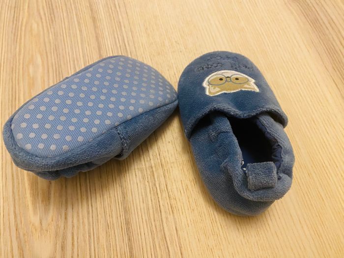 Lot de deux paires de chaussons pour jeune bébé, fille ou garçon. Taille 18/19. Ils sont en bon état, rarement mis.