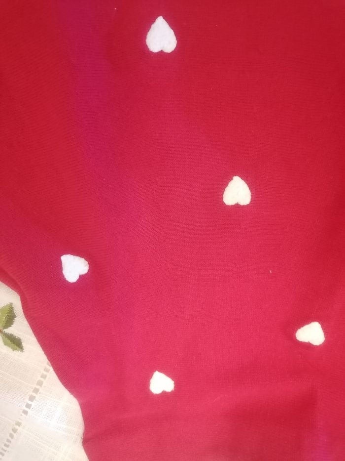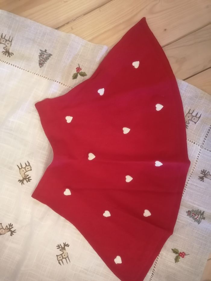 Très bon état pour cette jupe évasée rouge à cœur blanc
