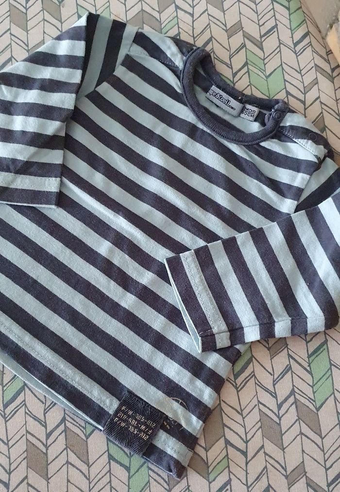 Tee-shirt manches longues garçon 👦 Rayures bleu et gris pressions épaule Marque tape à l'oeil Maison non fumeur Linge lavé avec lessive bébé