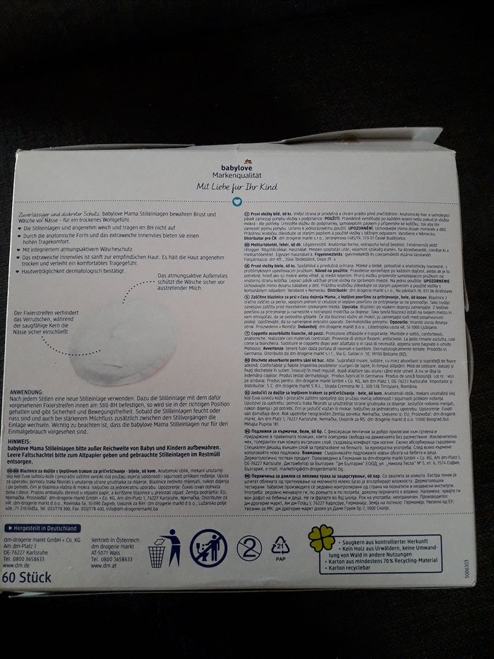 Paquet neuf de 60 coussinets d'allaitement. Acheté en Allemagne. Blancs. En coton