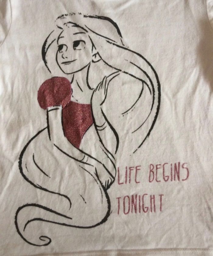 T-shirt, manches courtes, motif Raiponce, taille 2-3 ans, Disney. Utilisé