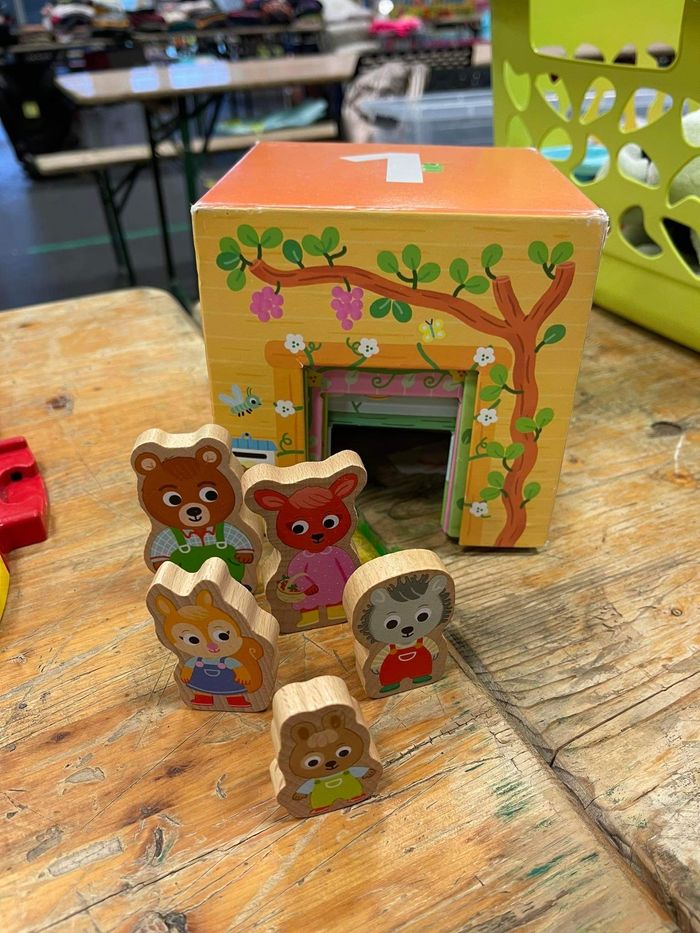 Cube a empilé plus personnage en bois