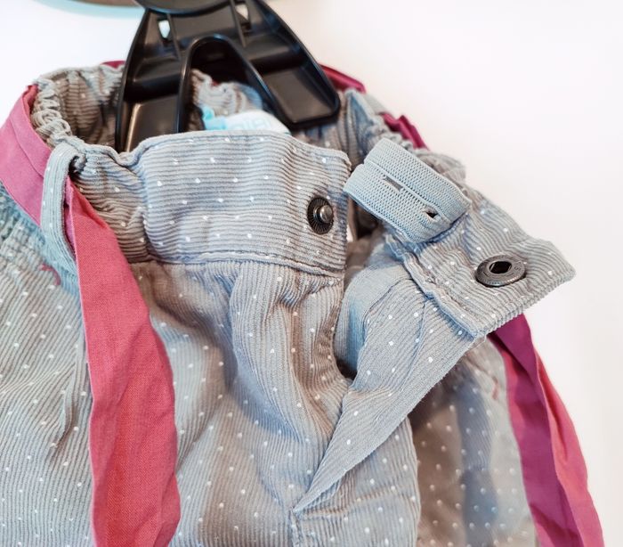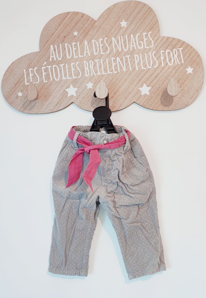 Pantalon de la marque OBAÏBI - En velours - Gris - Motif : pois - Ceinture en tissu - Ouverture pressionnée - Taille ajustable - Taille : 9 mois ❌ Excellent état ✅ Réductions activées : 5% dès 3 articles 10% dès 5 articles ✅ Envoi rapide (dépôt sous 24/48h) et soigné