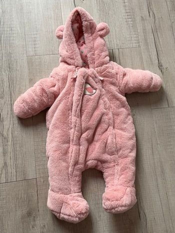 Vends combi-pilote taille 3 mois. Neuve, sans étiquette, jamais utilisée. Cette combinaison-pilote est un vrai cocon pour passer l'hiver en douceur et que bébé soit bien au chaud Doublure pour avoir bien chaud Ouverture totale devant par double glissière pour habiller bébé sans le gêner Capuche qui réchauffe et protège la tête Moufles intégrées Chaussons fixes intégrés
