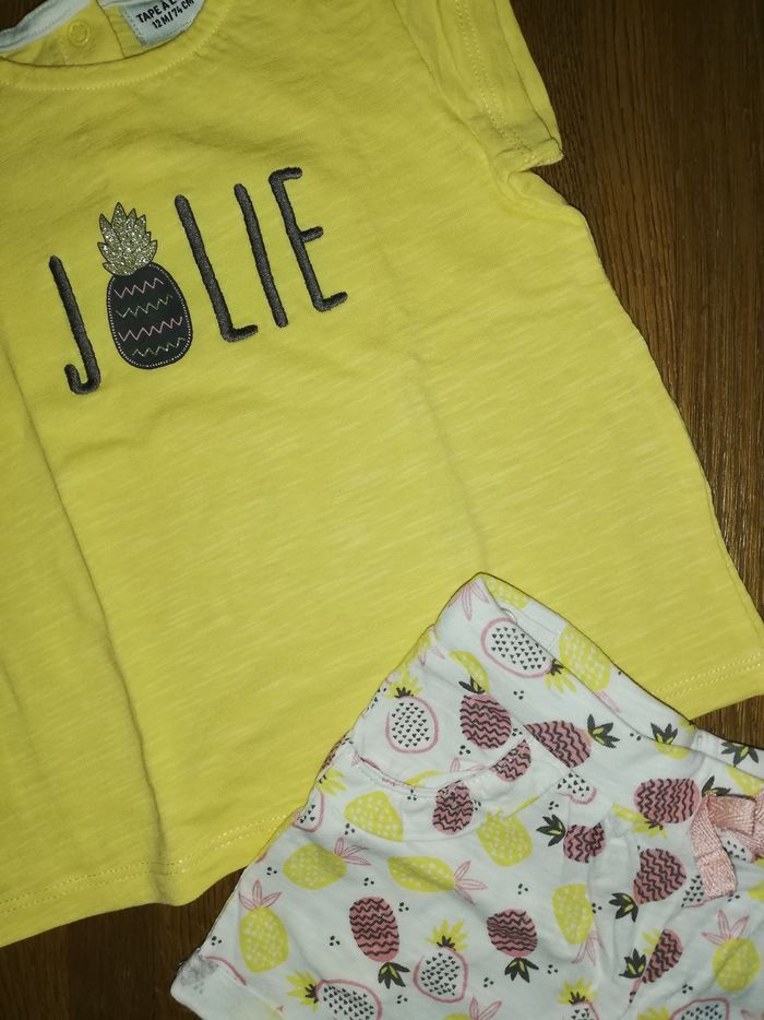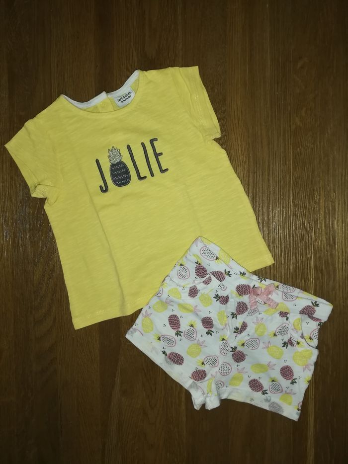 Lot tee-shirt manche courte + short léger. Marque tape à l'oeil. Taille 12 mois.