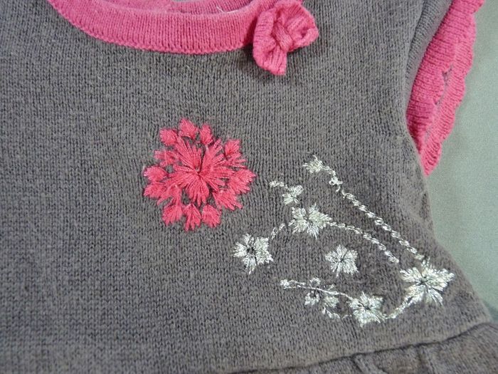 Robe manches courtes tricot marron rose fleurs Orchestra 3 mois 60 cm fille - photo numéro 3