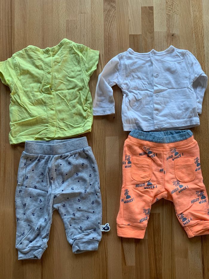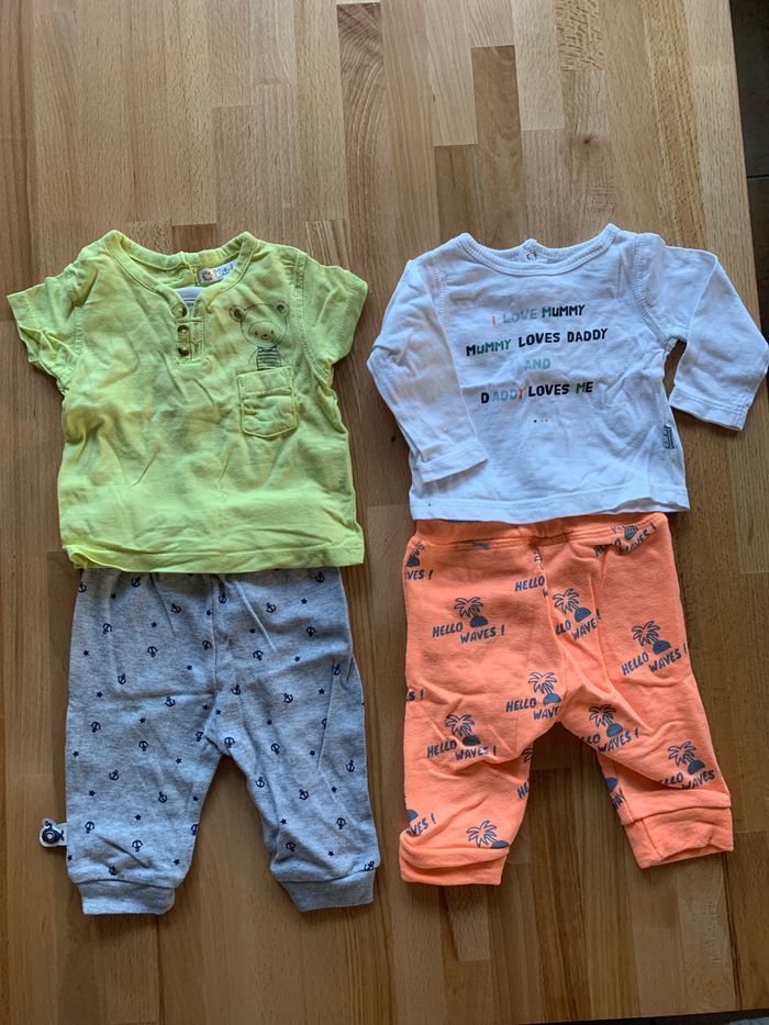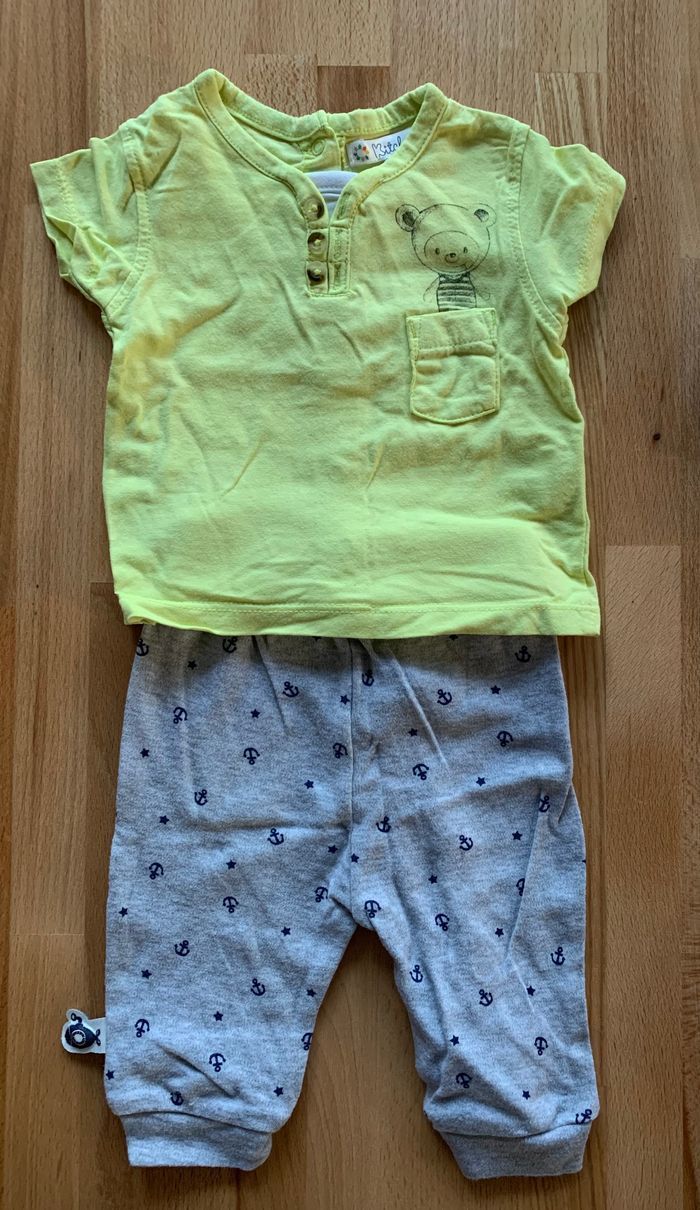 Taille 1 mois 1ere tenue : Haut kitchoun manches courtes Bas pat et ripaton 2 eme tenue: Haut tape à l’œil manches longues Bas kiabi