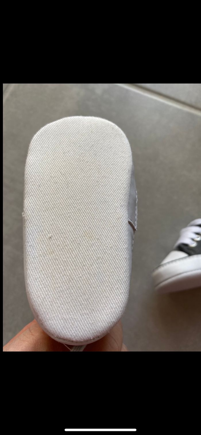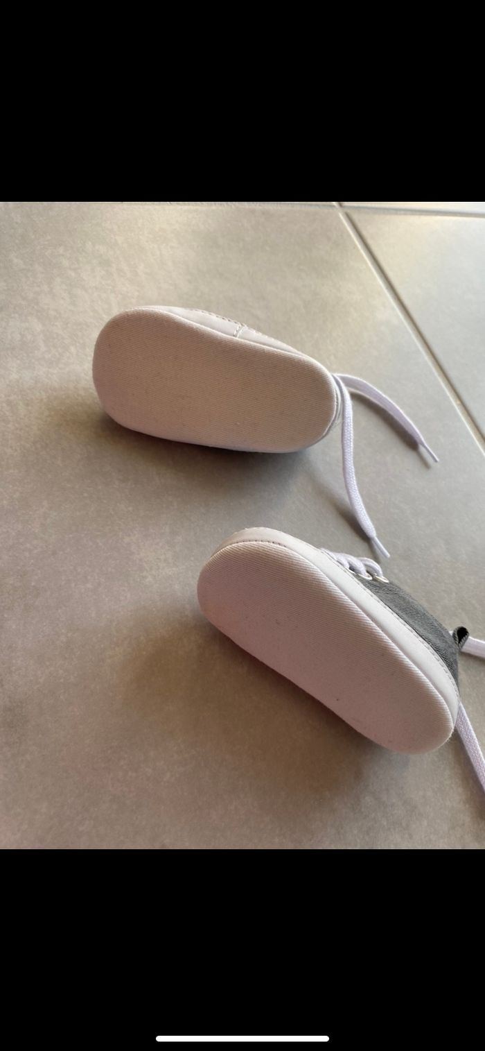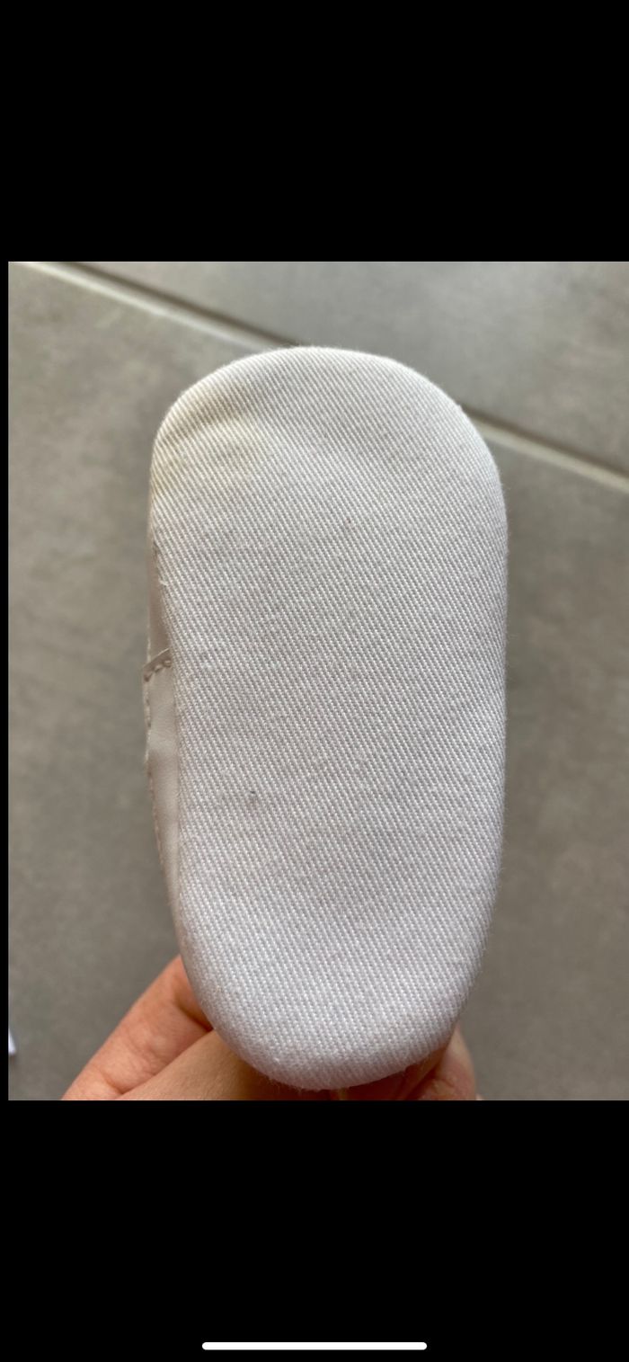 Taille qui n'est pas indiqué c'est du 0-6 mois j'ai comparé avec d'autres chaussures. Toute neuve, mais en prenant la photo j'ai vu qu'elles étaient légèrement jauni en dessous à un endroit. N’hésitez pas à me suivre car encore beaucoup de vêtements fille, des chaussures en cuir, des chaussons… (du 1 mois au 8 ans), des vêtements garçon (du 1 au 12 mois pour le moment ). Maison non-fumeurs et sans animaux même si je les adore. Il n'y aura pas de poils ou d'odeur désagréable. Vous recherchez quelques choses, demandez moi. Je réponds très rapidement. Bon shopping 😊.