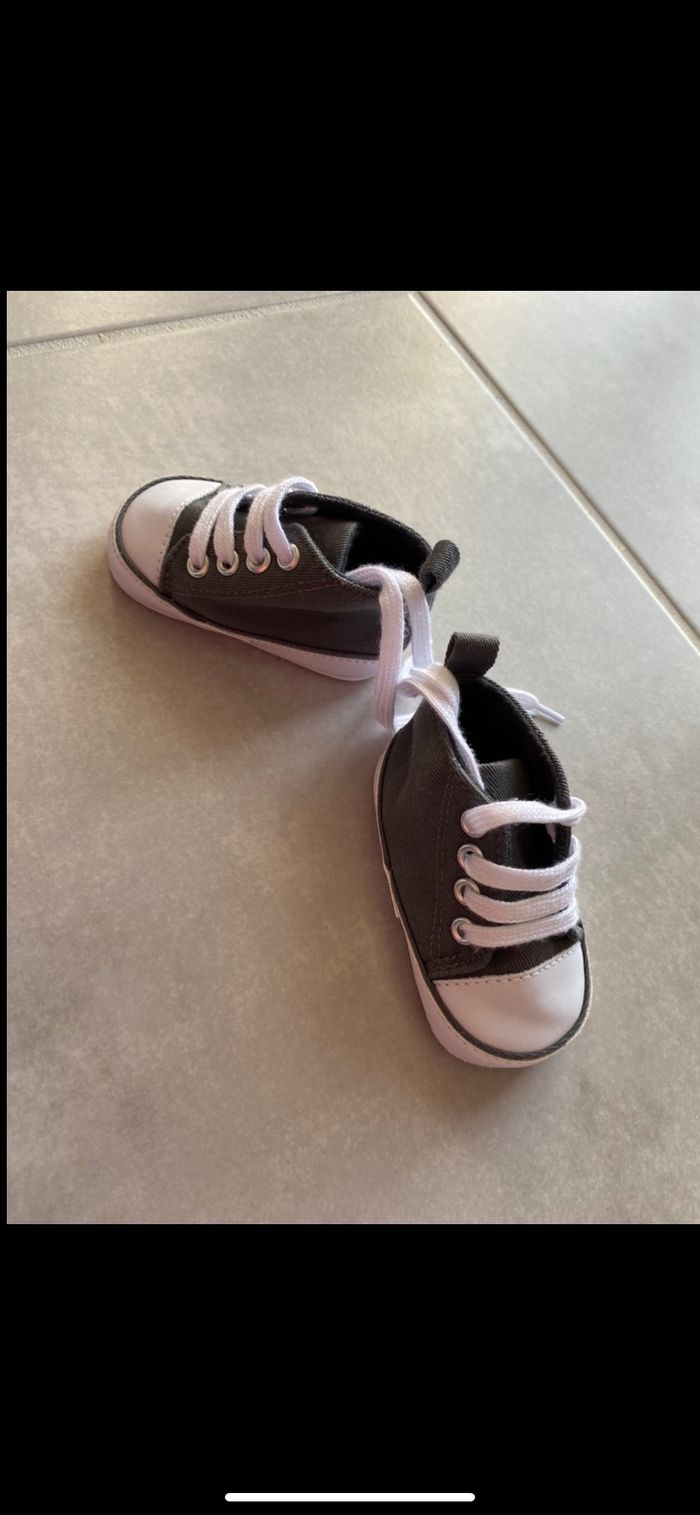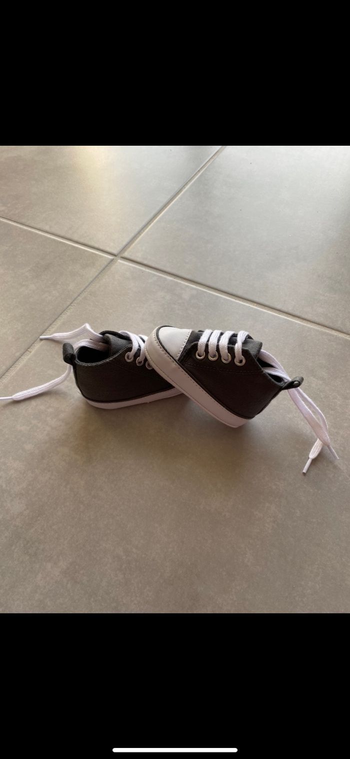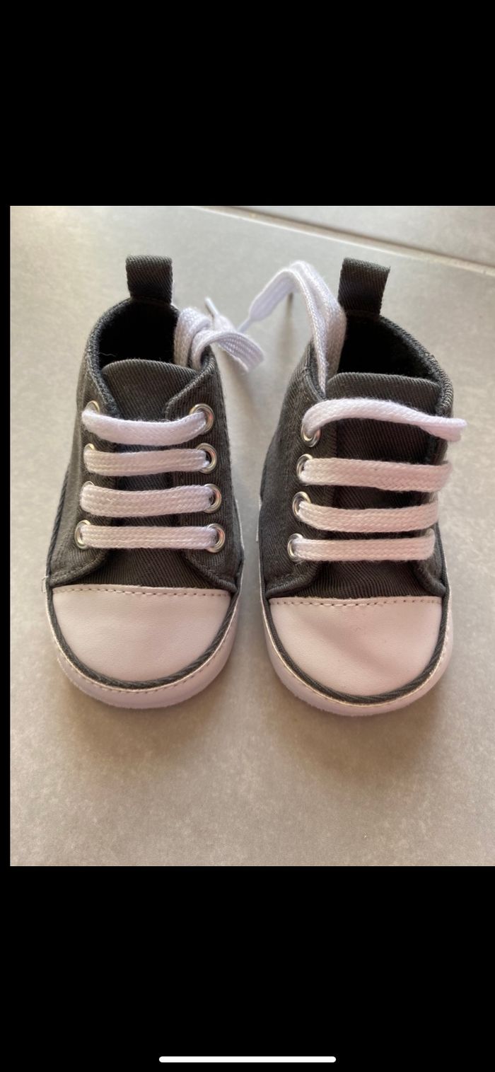 Taille qui n'est pas indiqué c'est du 0-6 mois j'ai comparé avec d'autres chaussures. Toute neuve, mais en prenant la photo j'ai vu qu'elles étaient légèrement jauni en dessous à un endroit. N’hésitez pas à me suivre car encore beaucoup de vêtements fille, des chaussures en cuir, des chaussons… (du 1 mois au 8 ans), des vêtements garçon (du 1 au 12 mois pour le moment ). Maison non-fumeurs et sans animaux même si je les adore. Il n'y aura pas de poils ou d'odeur désagréable. Vous recherchez quelques choses, demandez moi. Je réponds très rapidement. Bon shopping 😊.
