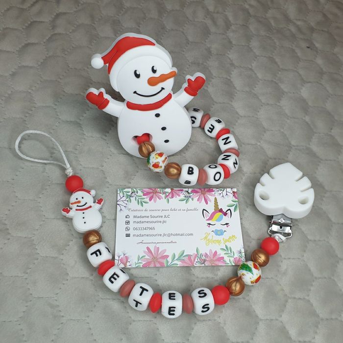 Attache tétine + Hochet Bonhomme de neige