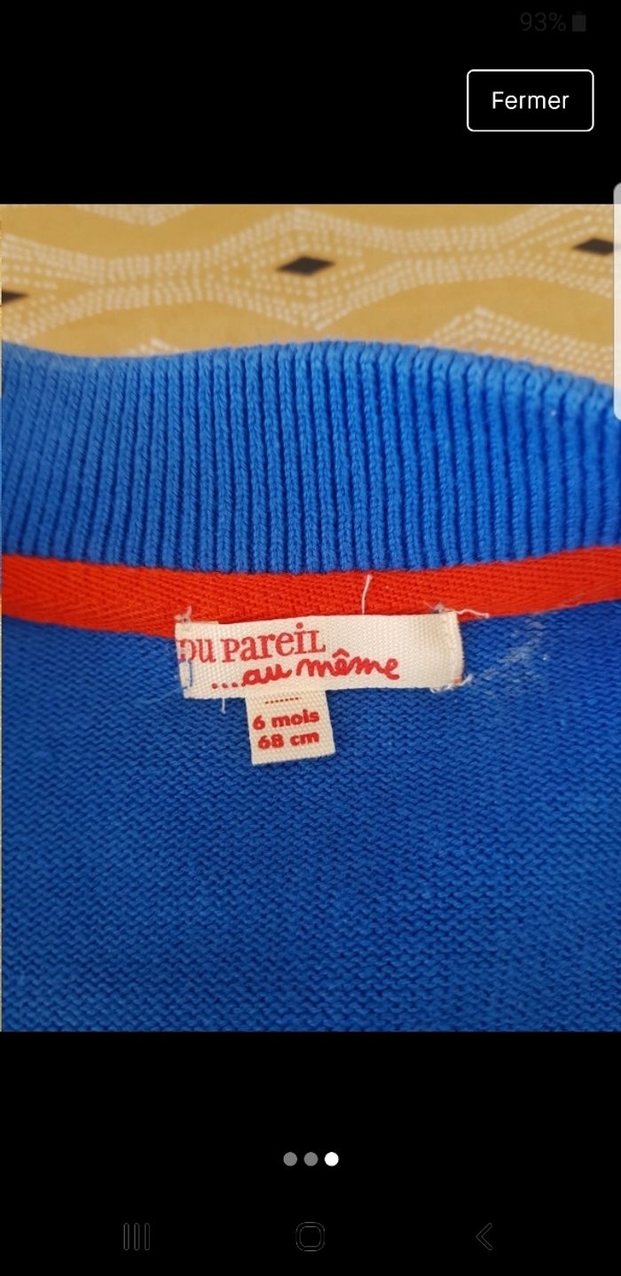 Gilet zippé a longues manches Couleur bleu roi Taille 6 mois Marque du pareil au meme