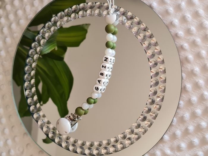 Attache tétine clipsable Personnalisé au prénom de votre choix Modèle selon vos couleur préférée Composition: perle en bois ou en silicone alimentaire sans BPA, respectant les normes européennes Entretien ( je vous conseille) l'eau et vinaigre pour désinfecter avant de donner à bébé 💙🩷🩵 Produit neuf et fait main ✋️