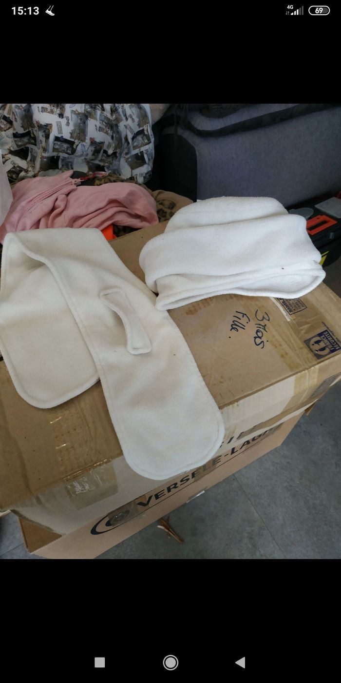 Écharpe et bonnet. Polaire. T.18/24 mois Couleur crème Lavé et porté plusieurs fois.