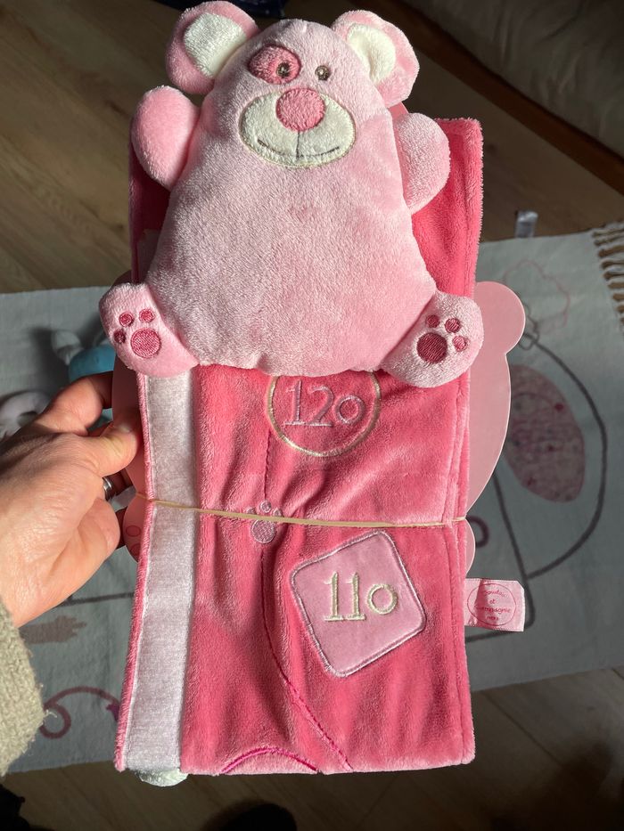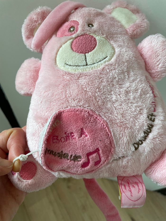 Jolie toise pour chambre de fille Avec doudou détachable et 2eme peluche qui fait boîte à musique Sympa pour offrir en cadeau de naissance.