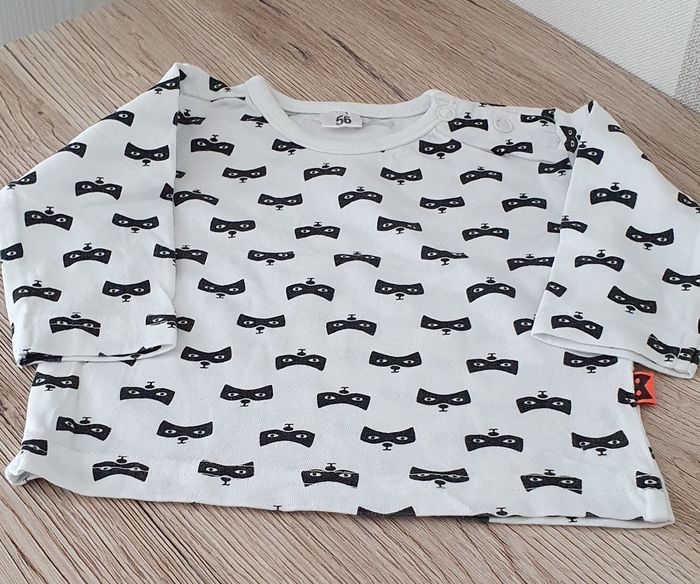 Tee-shirt manches longues pressions épaule garçon 👦 Couleur : blanc dessins noir Marque zeeman Maison non fumeur Linge lavé lessive bébé
