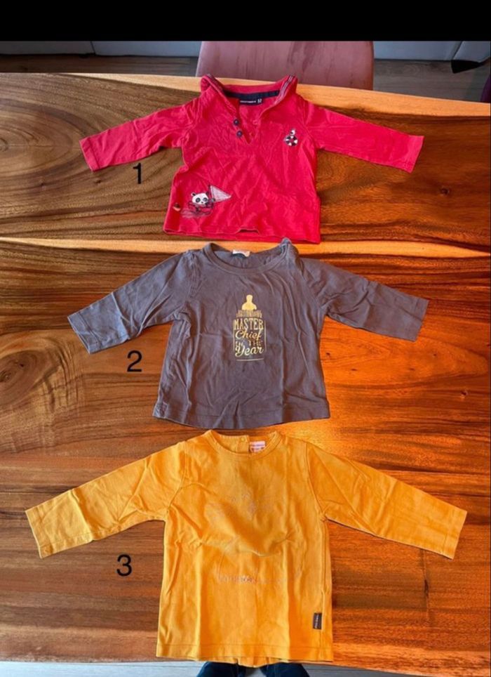 Vend lot de 9 articles bon état. Taille 12 mois Tee-shirt manche longe 1 : sergent major 2 : tape a l’œil 3 : p’tit bisous Pantalon 1 : sergent major 2 : nano nanette Pull 1 : lulu castagnette 2 : creeks (neuf avec étiquette) Gilet U Veste de pluie U