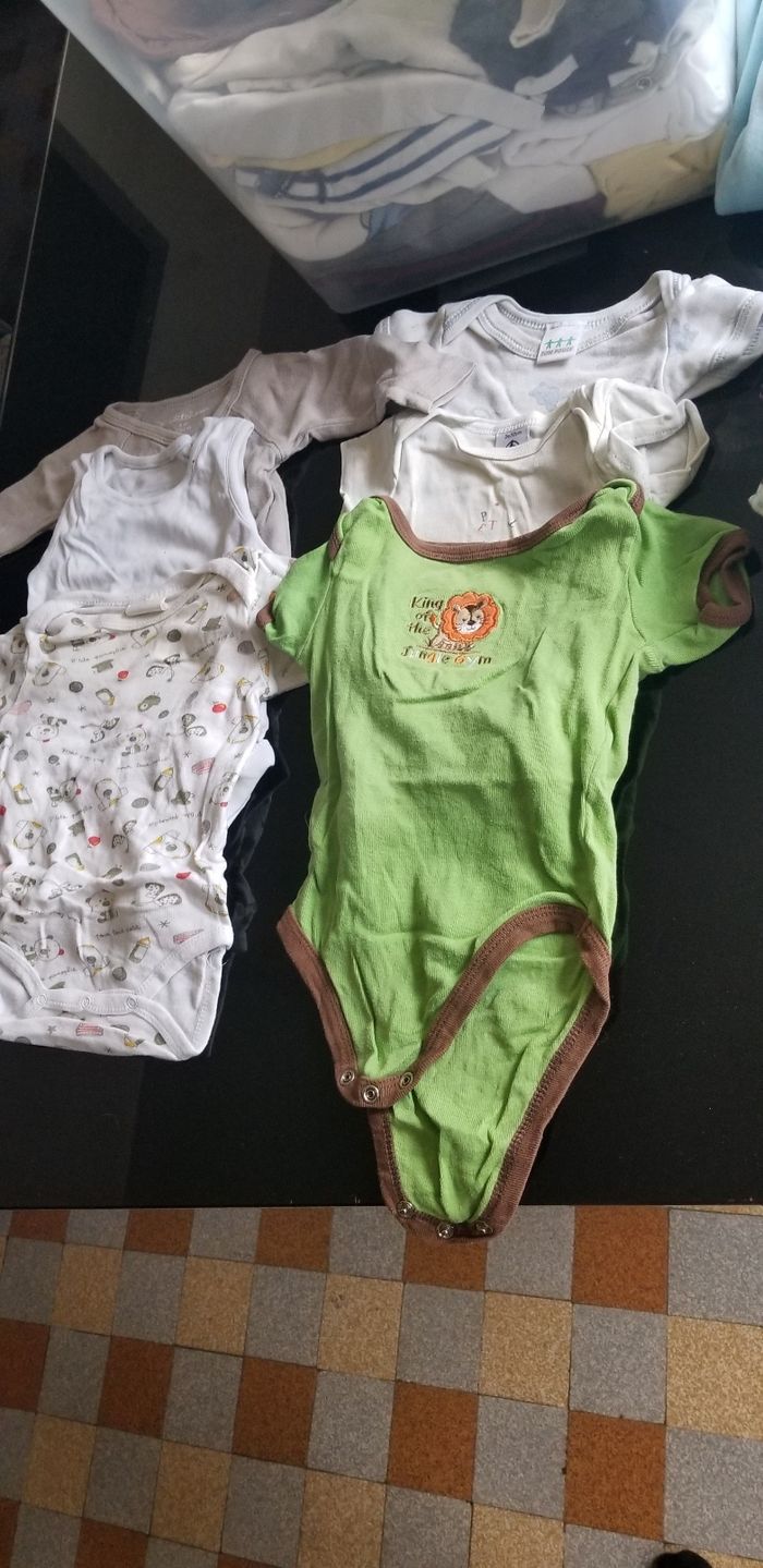 Lot 6 body 2 Manches longue et le reste manche court tous 3mois donc 1 tâches au niveau du colle