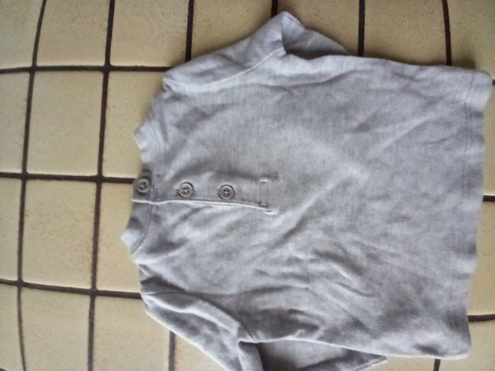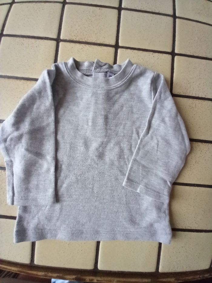 Vend sous pull en bonne état 3 bouton dans le dos Taille 3 mois Couleur gris Marque inconnue