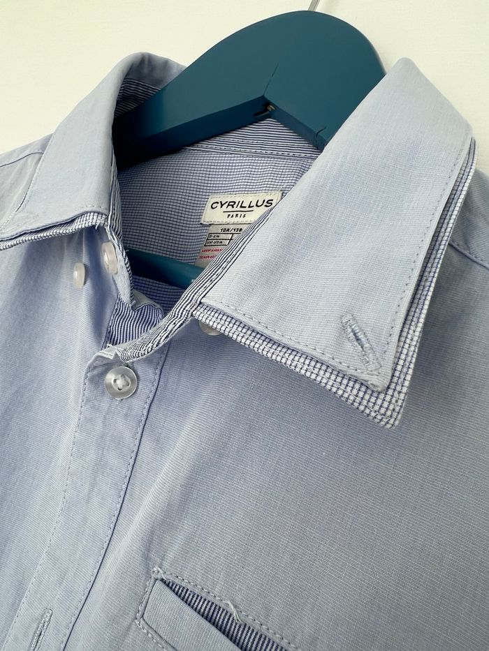 Chemise à manches longues de couleur bleu ciel. Poche sur le devant. En parfait état, aucune tâche ni trou, très peu portée. Taille 10 ans, marque Cyrillus. Envoi rapide et soigné, réduction automatique dès 2 articles sélectionnés. Mes autres ventes ici: #10ansgarçonugolola #10ansgarçon #garçon10ans #chemisegarcon10ans #cyrillusgarcon #cyrillus10ansgarçon