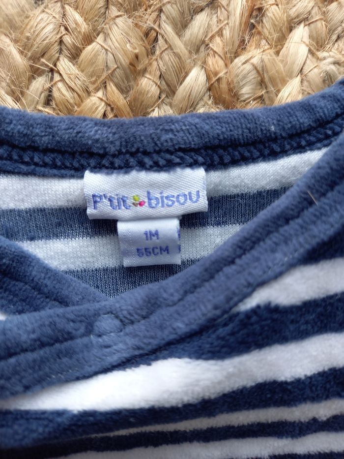 Pyjama marin ptit bisou . Ouverture par le devant, très pratique . Taille 50cm porté 1 fois lavé 2 fois .