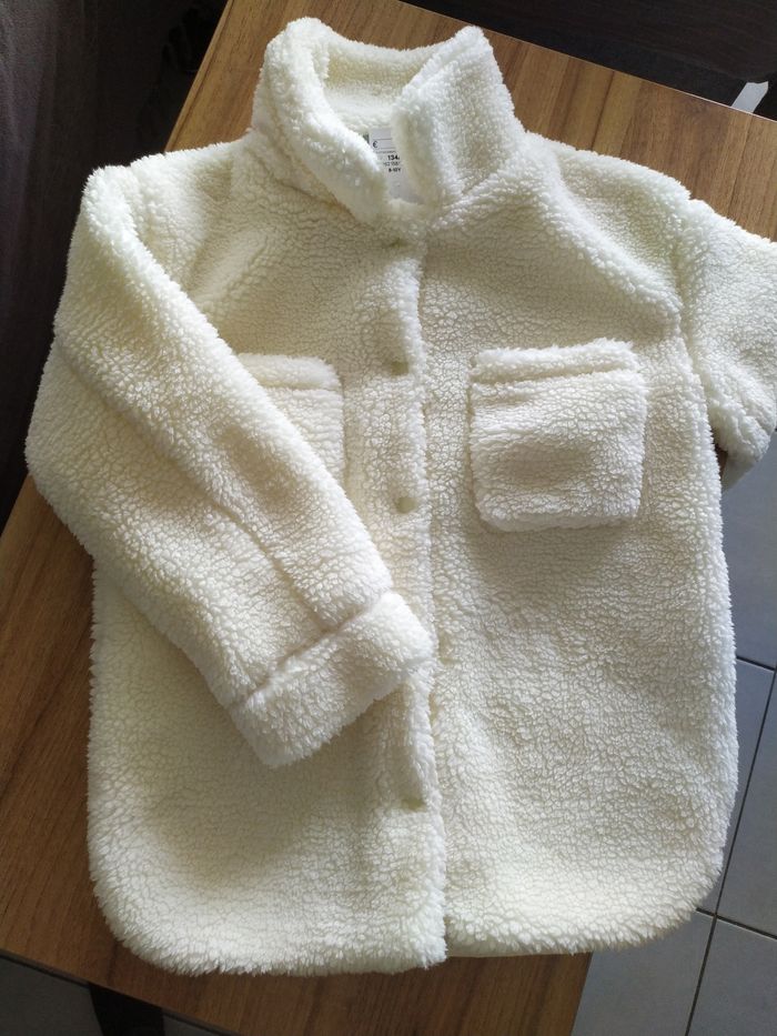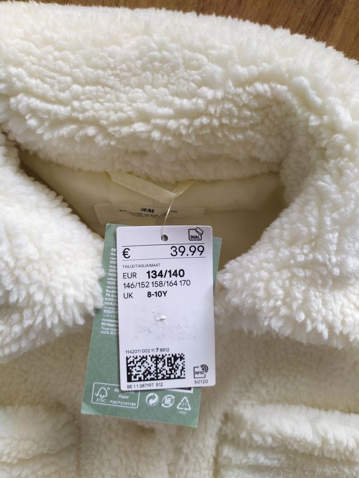 Magnifique manteau fille h&m blanc cassé, neuve avec étiquette. Taille 8-10 ans. Très beau rendu, effet moumoute avec col, les boutons sont des pressions. Erreur de taille, le rendu est vraiment beau. Prix magasin : 39,99€