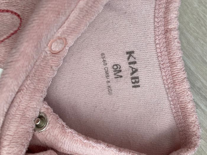 Pyjama en velours porté mais reste en bon état Taille : 6 mois Marque : Kiabi
