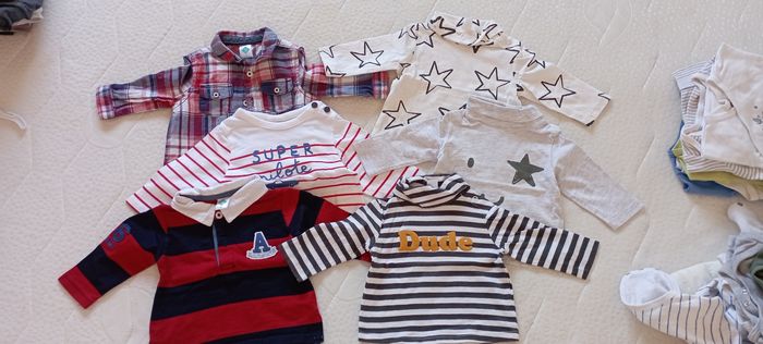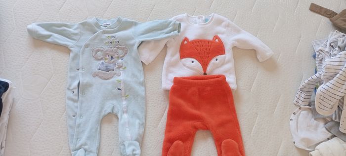Tout est en excellent état lavé avant la vente. Composé de pyjama body ensemble salopette pantalon haut manche longuesmul Quelques article son manquants sur le photo car doit être lavé. Les photo seront envoyé en messagerie si intéressé Marques : Kiabi, Z, Tex baby
