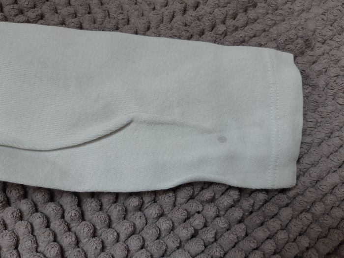 Le blanc est tâché à plusieurs endroits, voir sur photos. Le rose aucune tâche.