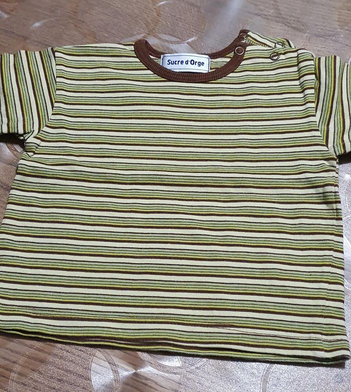 Tee-shirt manches courtes garçon 👦 Pressions épaule Couleur vert marron Marque sucre d orge Maison non fumeur Linge lavé avec lessive bébé