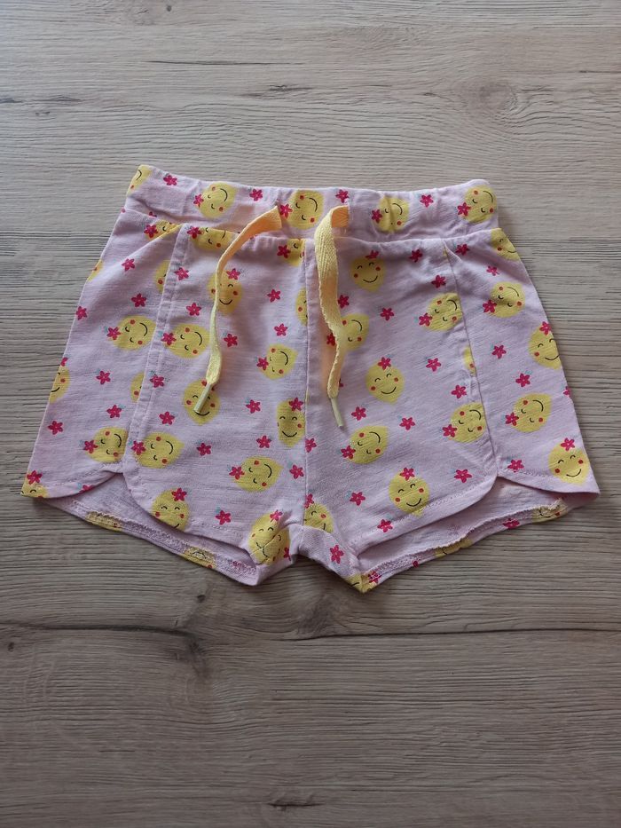 Short rose Avec smiley Taille légèrement élastique et pouvant être régler avec les cordons Taille 18 mois