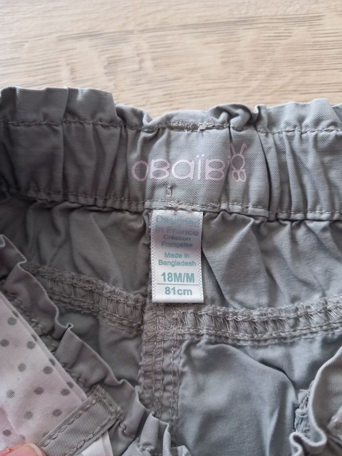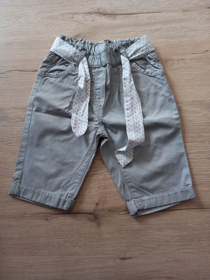 Pantacourt gris avec ceinture blanche à pois 2 poches devant et 2 derrière Taille 18 mois