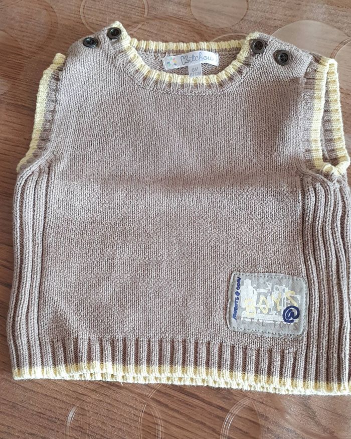 Pull sans manches garçon 👦 Couleur marron Marque kitchoun Maison non fumeur Linge lavé avec lessive bébé