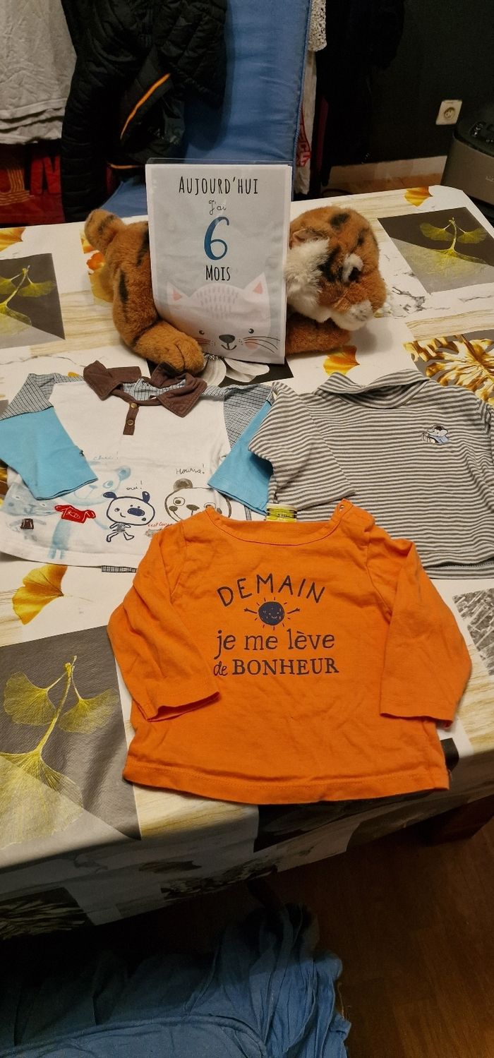 Lot de 3 tee-shirts manche longue taille 6mois très bonne état plusieurs marques