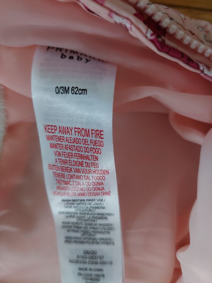 Combinaison fleurie 1-3 mois chaude à l interieur Marque primark
