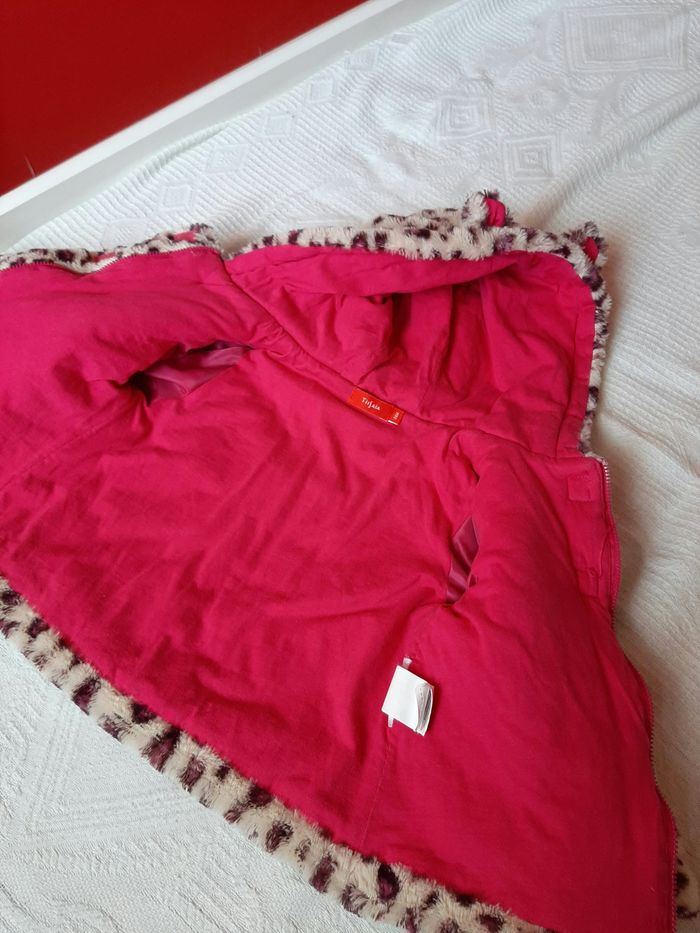 Tres joli manteau panthere violet et beige . Ultra doux interieur comme exterieur. Leger facile a mettre .