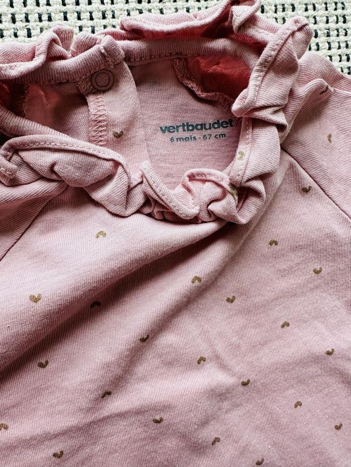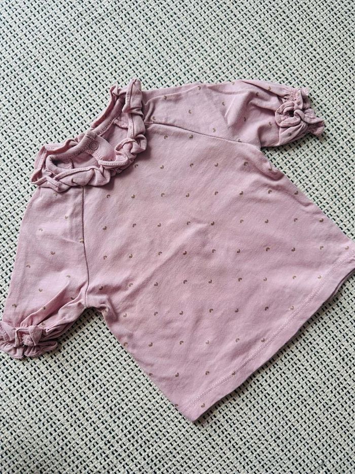 Tee-shirt manches courtes rose avec motifs cœurs dorés. Neuf, jamais porté