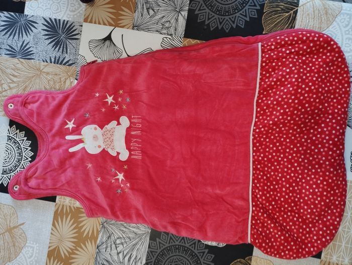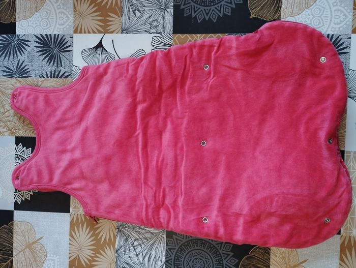 Gigoteuse très bon état. En velours doux bien chaude. Fermeture précisions aux épaules et fermeture autour. Petit plus sur l'arrière possibilité de la réduire par des précisions.