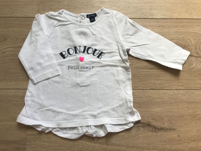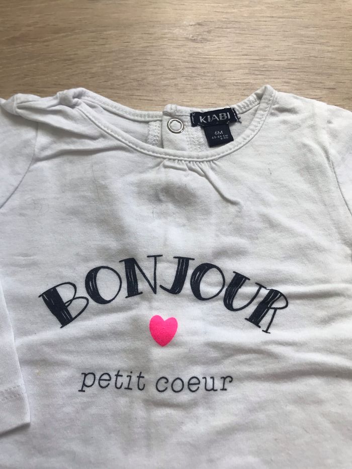 Tee shirt 6M Kiabi blanc « bonjour petit cœur »