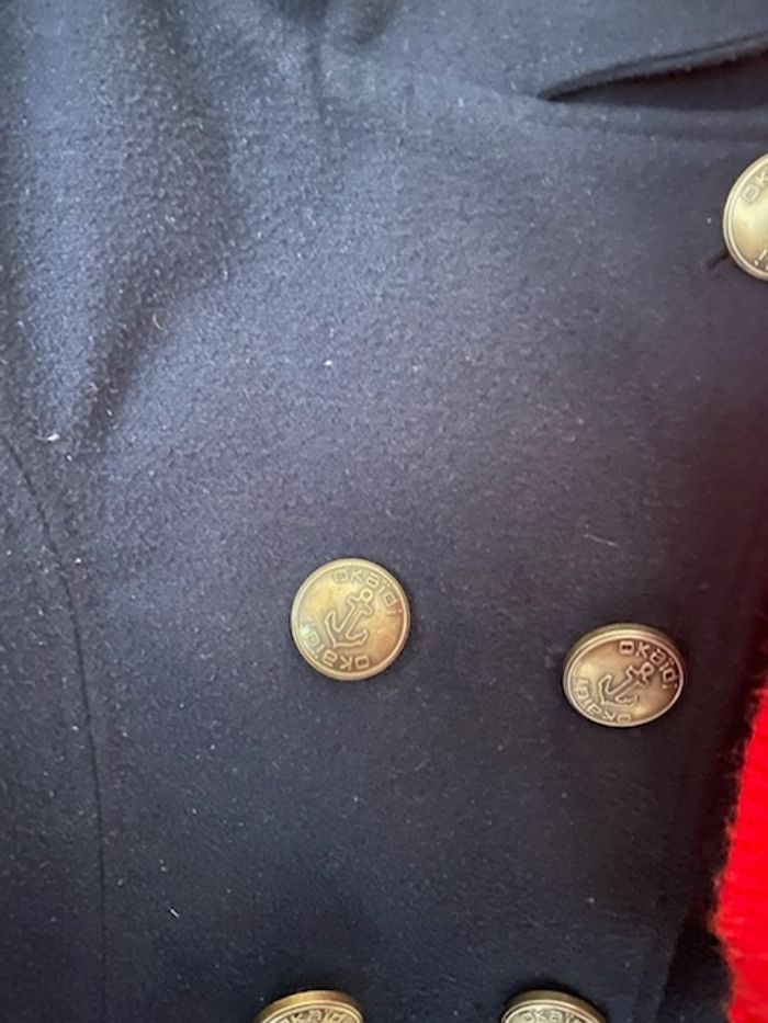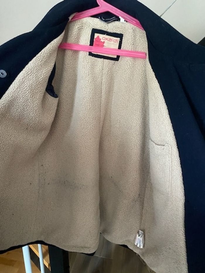 Manteau style caban bleu marins de la marque okaidi il manque un bouton mais peut passe inapercue