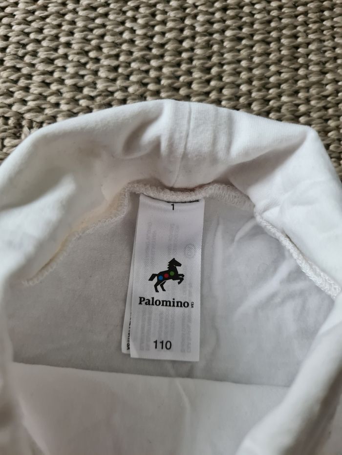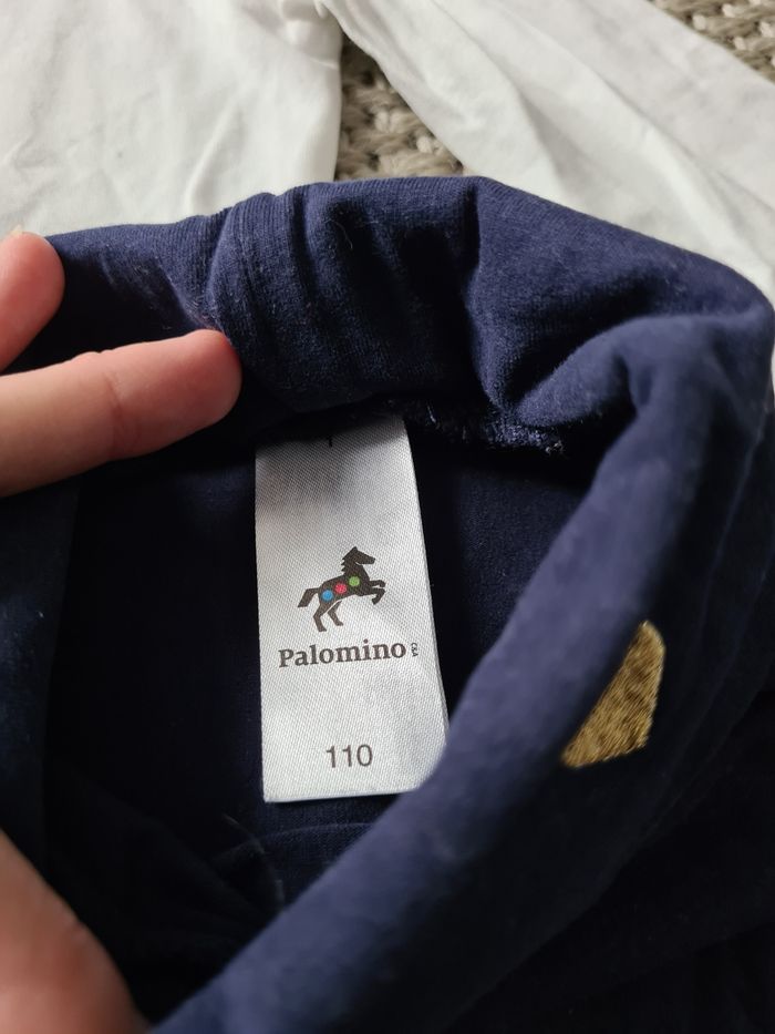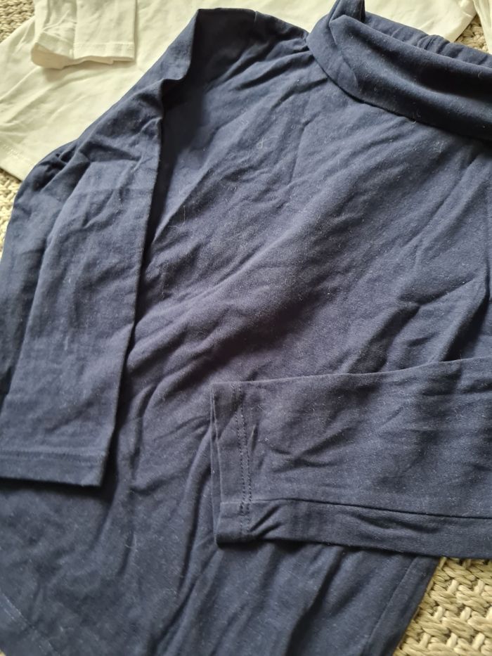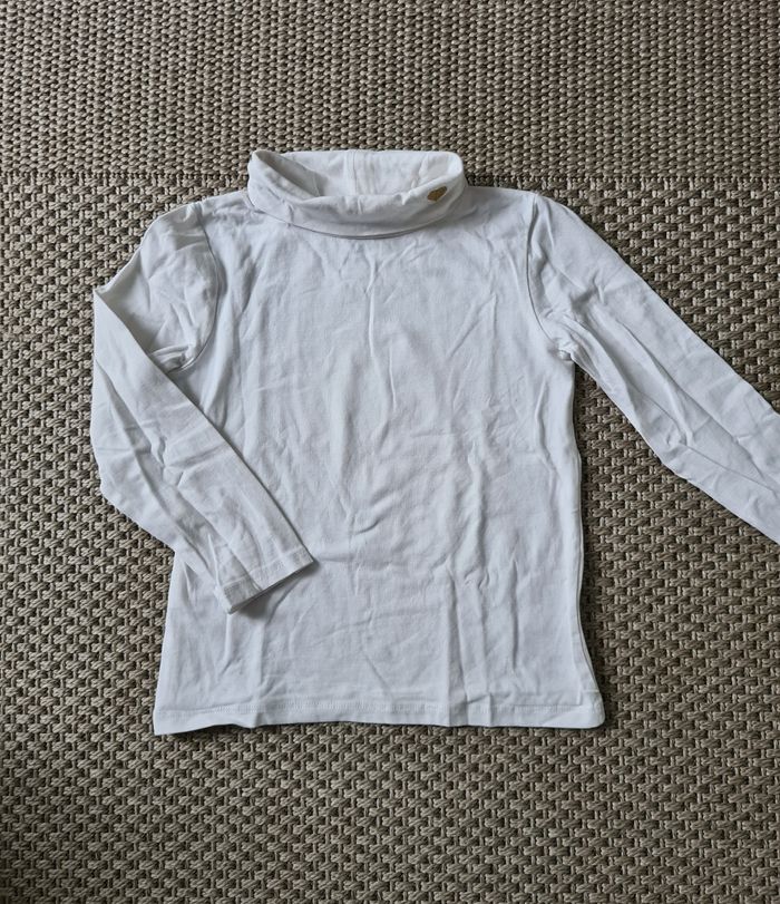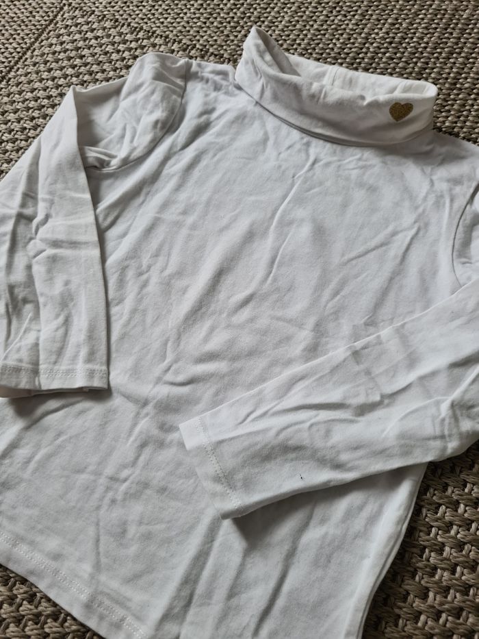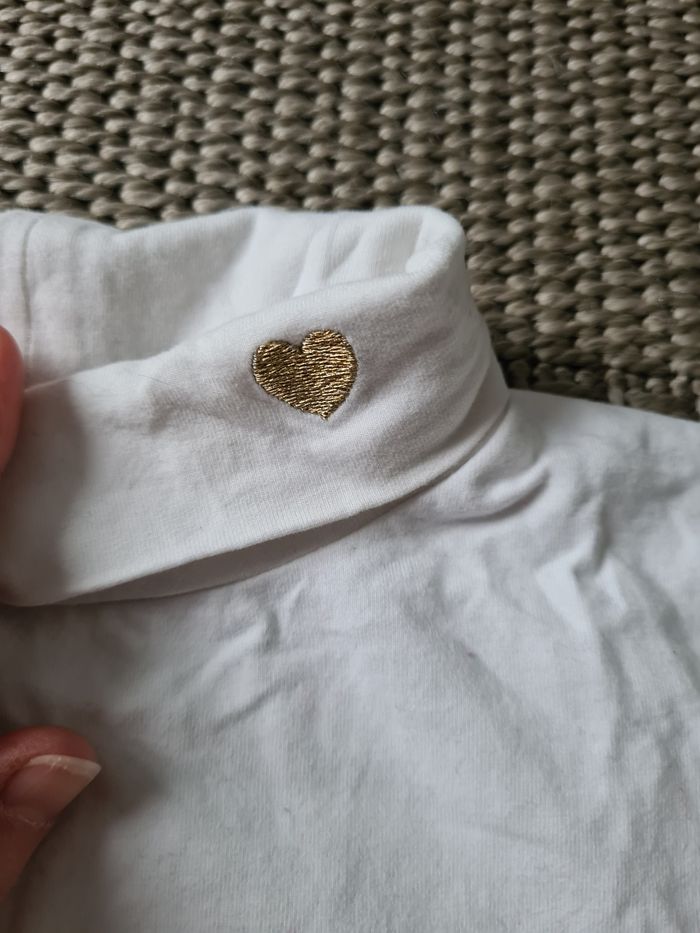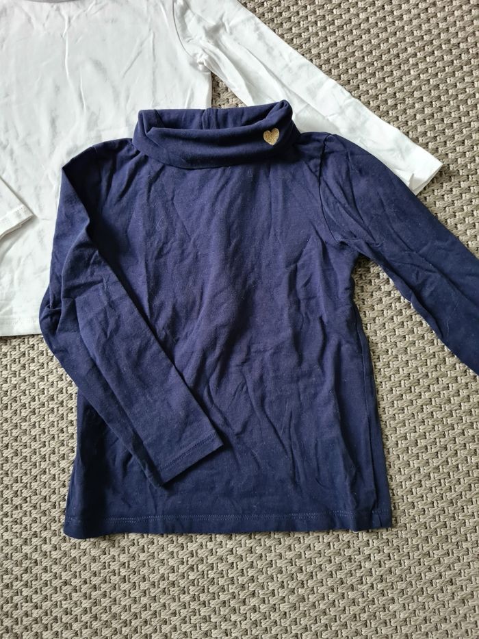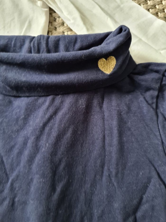 Lot de 2 t-shirts cols roulés avec un motif coeur sur le col. Couleur blanc et bleu marine. Porté à fois chacun. Comme neuf. Taille 5 ans - marque palomino