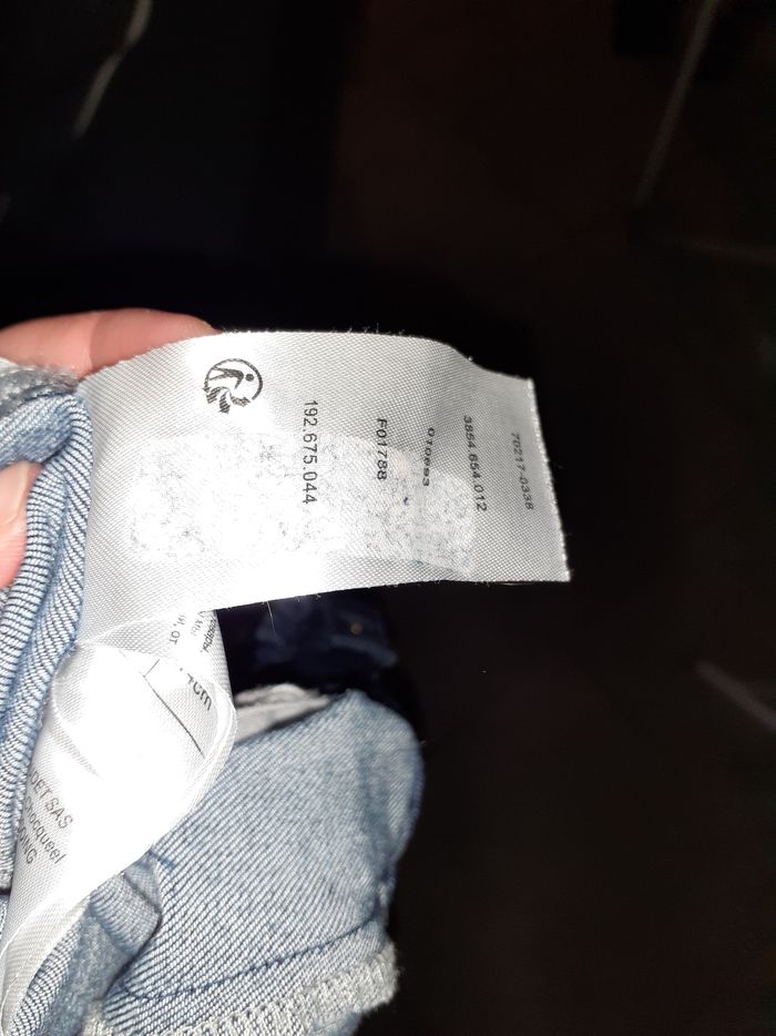 Salopette taille 12 mois Marque verbaudet Il y a une tâche collante sur l'étiquette car j'avais mis une étiquette autocollante pour noter le nom de mon fils (voir photo)