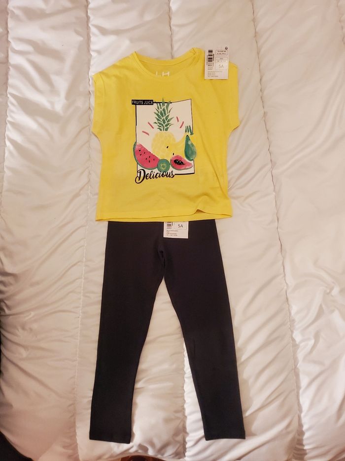 Ensemble fille taille 5 ans jamais mis neuf Caleçon noir et haut jaune imprimé