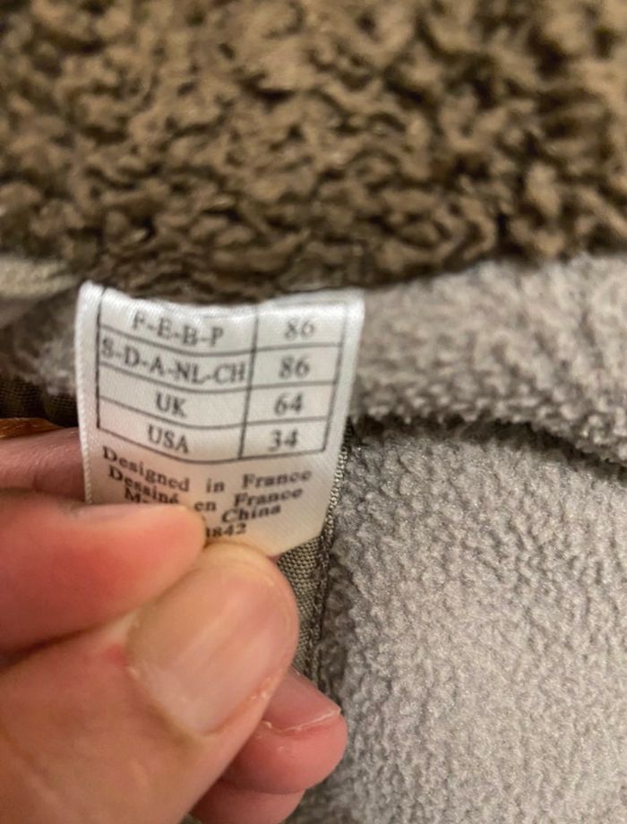 Porté quelque fois Bien chaude pour l’hiver Il y a quelques tâches peu visibles que je n’arrive pas à faire partir, voir photo Taille : 86