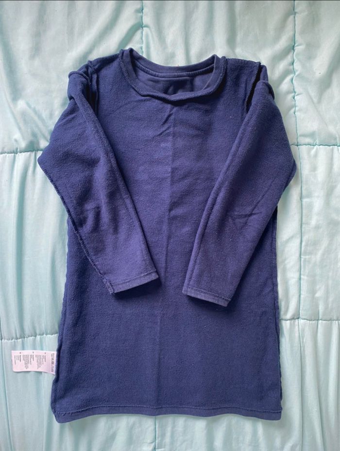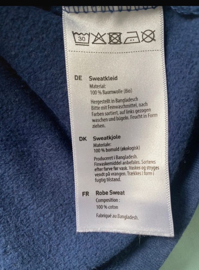 Jolie robe pull chaude, bleu marine, 100% coton, porté quelque fois, en bon état