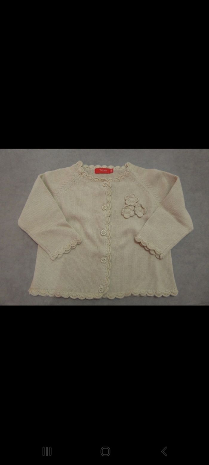 NEUF, jamais porté Gilet beige fantaisie Bords croquet Fleurs en relief à la poitrine Boutons plastique en forme de fleurs Tissaia - 12 mois