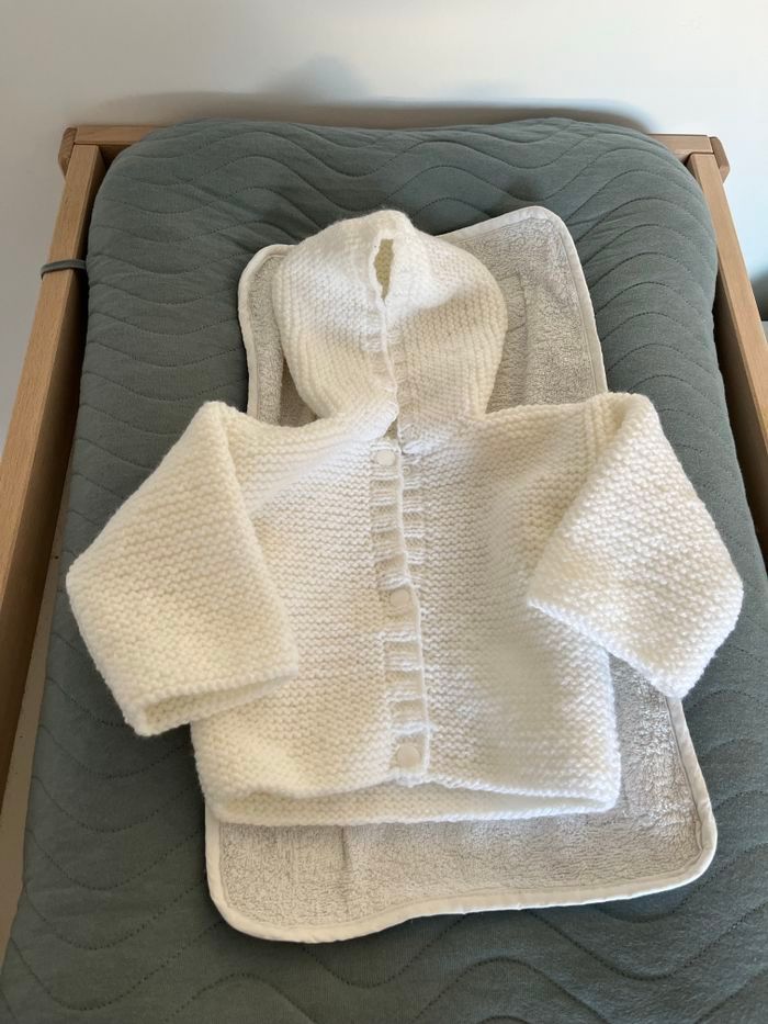Gilet blanc , fait main, 3-6 mois